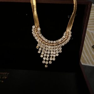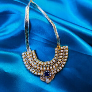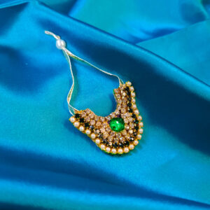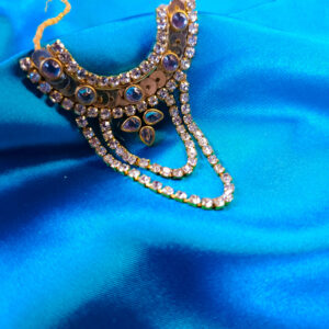 Enhance the divine beauty of your Ladoo Gopal idol with this exquisite handcrafted necklace. Designed with intricate detailing, this necklace features a stunning gold-tone finish adorned with shimmering stones that reflect grace and devotion. The delicate floral pendant adds a touch of purity and elegance, while the adjustable thread ensures a perfect fit for different…