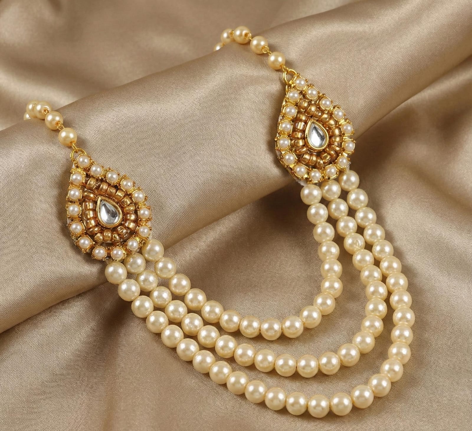 Give your Laddu Gopal Ji a majestic and royal appearance with this beautifully handcrafted Triple-Layer Pearl Kundan Haar.